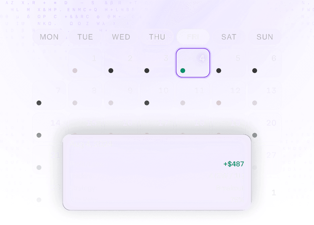 Trades auf einen Blick verfolgen und analysieren – mit intuitiver Kalenderansicht für Muster, Volumen und Performance.